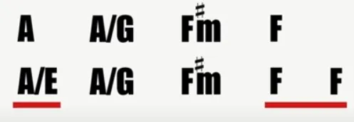 In the verse of the song, the chords are varied slightly the second time around, which creates this really nice descending bass line. When it cycles around to the A, The Beatles could have just used the same A chord in root position. Instead, they used an A/E, which created a descending bassline that goes from G to F# to F then E.