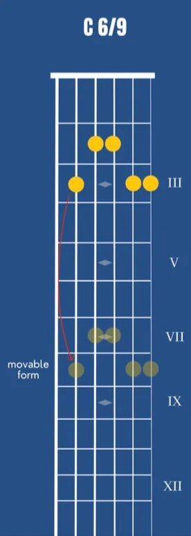 The concept of adding little melodic lines on top of your chords helps take a static chord and introduce some movement to it. However, you can take it a step further and introduce a new chord called the 6/9 Chord.