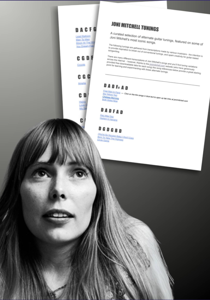 One of Joni Mitchell’s most distinctive sounds comes from her use of open tunings.