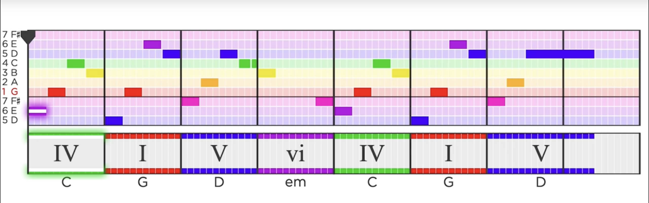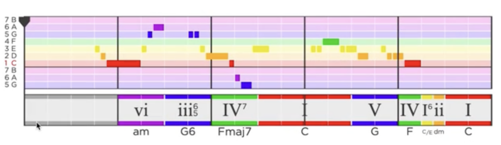 Let’s take a look at The Beatles’ classic song, “Let It Be”. Below is an analysis of the song’s chorus chords and melody done using Hooktheory: